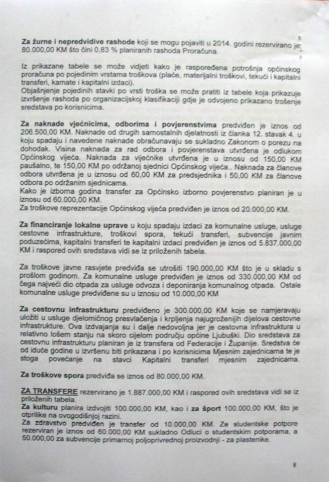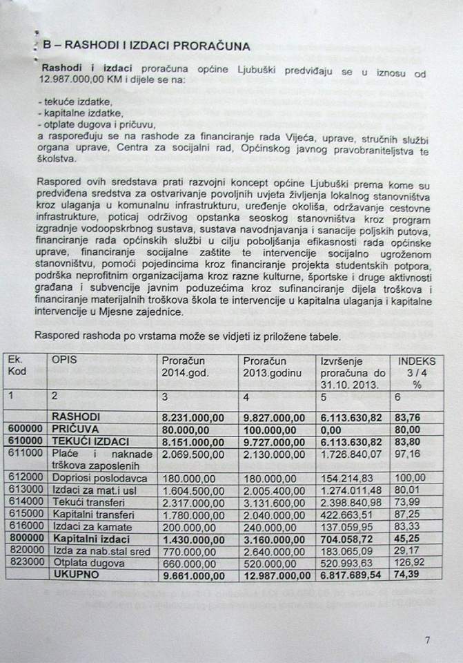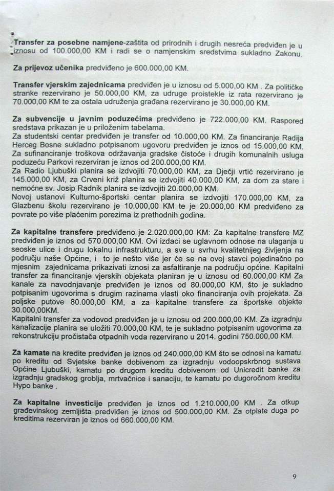 Razlog tome nije kvalitetniji rad općinskih struktura, već pokušaj bježanja od javnosti, jer je općinu Ljubuški zadesila financijska katastrofa, što je vidljivo iz dokumentacije pripremljene vijećnicima. Općina, napomenimo, još nije isplatila plaće za listopad, čime je prekršila zakon. Za isplatu se čeka transfer novca iz županije.