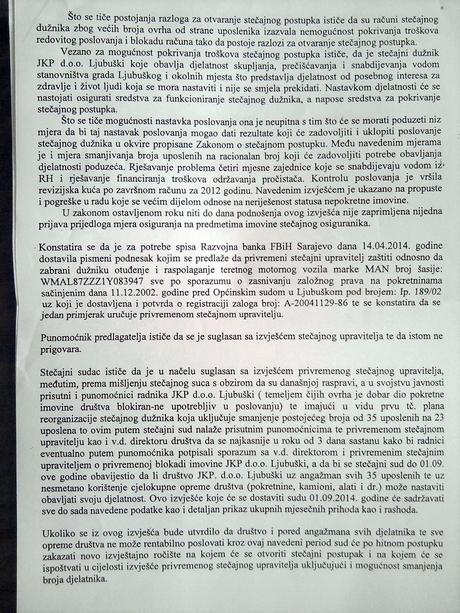 - nastavlja se sa poslovanjem uz smanjenje broja radnika na 23, dok bi ih 12 trebalo dobiti otkaze ukoliko se ne dogovore sa stečajnom upraviteljicom do 01. rujna ove godine;