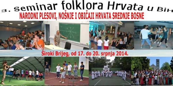 3. Seminar folklora Hrvata u BiH počinje 17. srpnja u 9 sati, a završava 20. srpnja u večernjim satima.