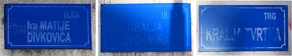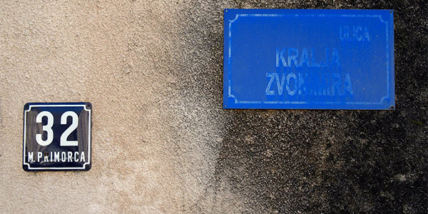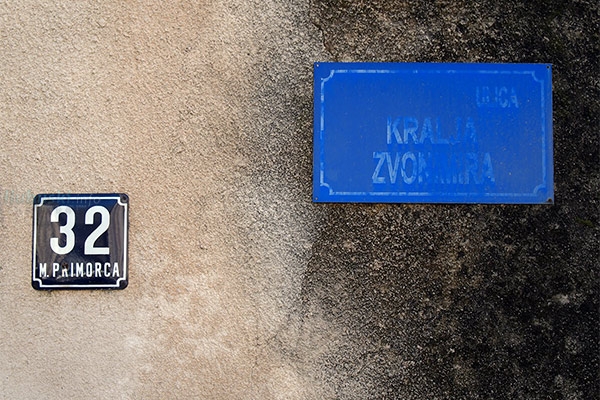 Što se još može vidjeti obilaženjem ljubuških ulica uzduž i poprijeko? Pa nazivi ulica koje je naćurila vlast nakon 1990. (zna se koja) jedva se čitaju, mnoga slova pojelo je vrijeme, a ima ih u svakakvom stanju. Tako se naziv "ULICA KRALJA KREŠIMIRA" nalazi prikačena na banderu. Tja, zamislite, kraljevski nazvana ulica, a njezin kralj visi na banderi, kao kakav seoski lupež!? Na jednoj zgradi, nasuprot pokojne Duhanske stanice, stoji naziv "ULICA KRALJA ZVONIMIRA", jedva čitljiv, na ofucanom i tamnom zidu. Pored njega nalazi se stari naziv "M. PRIMORCA" s brojem 32, ali još dobro vidljiv i čitljiv, na svijetlom i očuvanom dijelu zida. Opet je jedan hrvatski kralj, ovaj put Zvonimir, izgubio bitku protiv Marijana Primorca, komunističkoga ideologa. Inače, kad pogledate i druge socijalističke ploče s nazivima "Braće Dizdarevića", "Radnička" i druge, vidjet ćete da se sjaje i čvrsto stoje i do dana današnjega. Ne mogu im ništa ovi novi kapitalisti. Pa sad, Ti budi pametan, pa odgovori: U kojem sustavu je Ljubuški bio grad s brojevima i kompletnim adresama, a u kojem sustavu je grad bez brojeva i s invalidnim adresama?