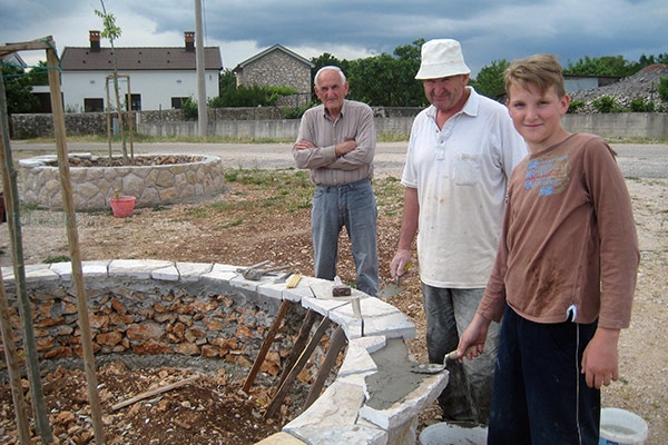 S kamenom druguju djed, otac i sin