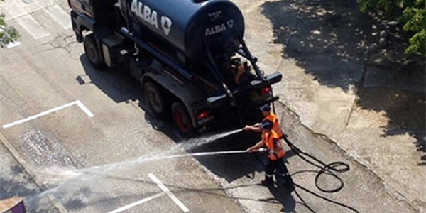 Iako smo se prethodno obraćali Uredu za komunalnu djelatnost i tražili pomoć u smislu angažiranja Vatrogasaca i njihovih cisterni, dobili smo negativan odgovor uz obrazloženje da je to u ovom trenutku nemoguće. Iskoristili smo priliku angažirati vozilo, koje je isključivo namijenjeno za pranje i čišćenje ulica.