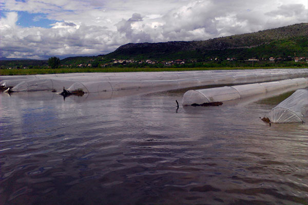 Stojko me doveo na jedno mjesto iza svoje kuće odakle se pogledom može obuhvatiti cijelo radiško polje, i gotovo sve parcele na kojima su tuneli i lubenice pod vodom. Nikola ima tridesetak duluma, nešto mu malo nije pod vodom. U Milog 25 duluma, Vid 25, Stojko 20, Zlatan 20, Kamilo 20, Miro i Jurica 15. Ovo je samo površina parcela koje se mogu pogledom obuhvatiti sa jednog mjesta, a to je više od 150 duluma.