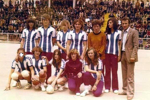 S djevojkama na slici je i trener prof. Ferdo Mikulić koji se upravo u to vrijeme "transferirao" iz osnovne škole u Klobuku u ljubušku Gimnaziju. Generacija u kojoj je Marija Pejčinović bila brzonogo krilo, ostala je upamćena kao jedna od najnadarenijih u povijesti ŽRK Izviđač.