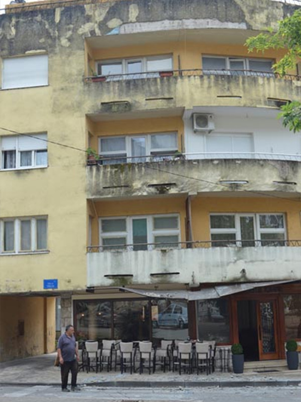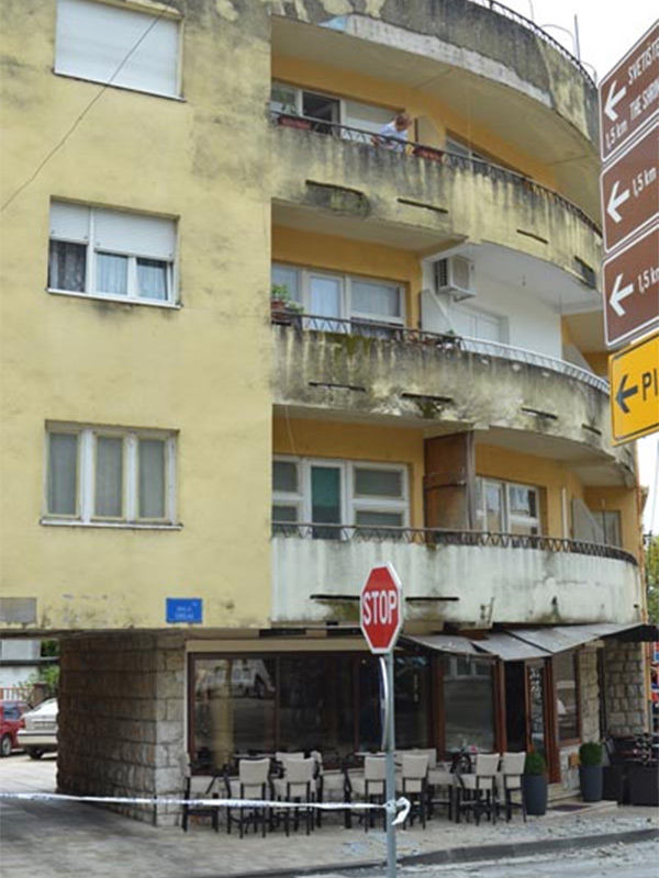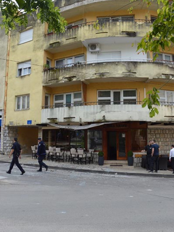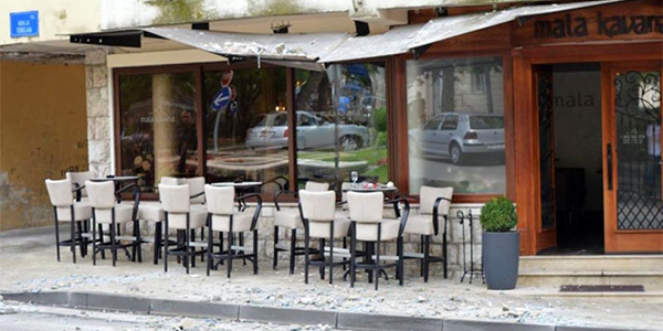 Ipak, dio obrušene fasade je probio tendu i zatrpao njihov stol, ali su se gosti, prema izjavama očevidaca, uspjeli refleksno izmaknuti.