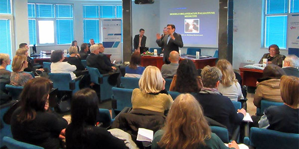 Nakon pozdravnih govora i predstavljanja svih sudionika, prof.dr.sc. Veljko Đorđević je otvorio konferenciju svojim izlaganjem na temu "Palijativna medicina - civilizacijski iskorak", nakon čega je riječ preuzela prof.dr.sc Marijana Braš koja je govorila o razinama organizacije palijativne medicine.