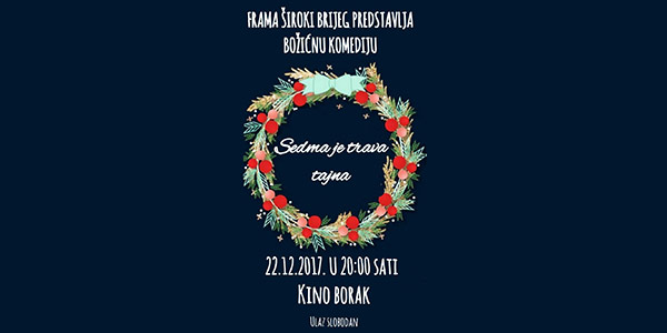 U petak 22.12.2017. Frama Široki Brijeg će izvest predstavu "Sedma je trava tajna" u Širokom Brijegu.