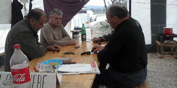 Na skretanju ka šatoru danas cijeli dan dežura prometna policija, pa nam se čini kako čitaju portale jer se više ne skrivaju. No, ne rade nikakve intervencije, niti zaustavljaju niti kontroliraju branitelje osim ako neštp tajno ne pišu nesto. Vrag ne miruje a branitelji su sumnjičavi. Puše se i na hladno.