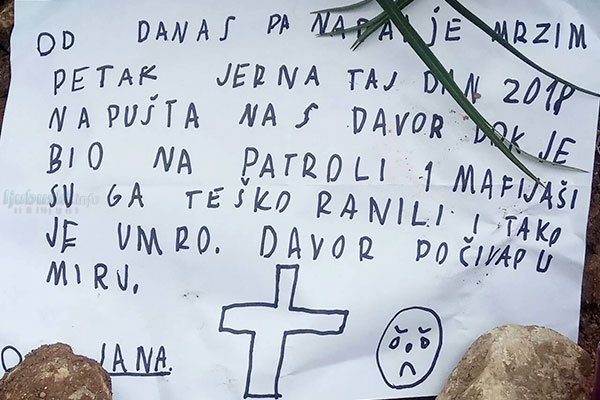 Slučaj je i ujedinio sve ljude dobre volje, nisu ostali ravnodušni ni oni najmlađi, među cvijećem na grobu policajca Davora Vujinovića našlo se pismo jedne male djevojčice.