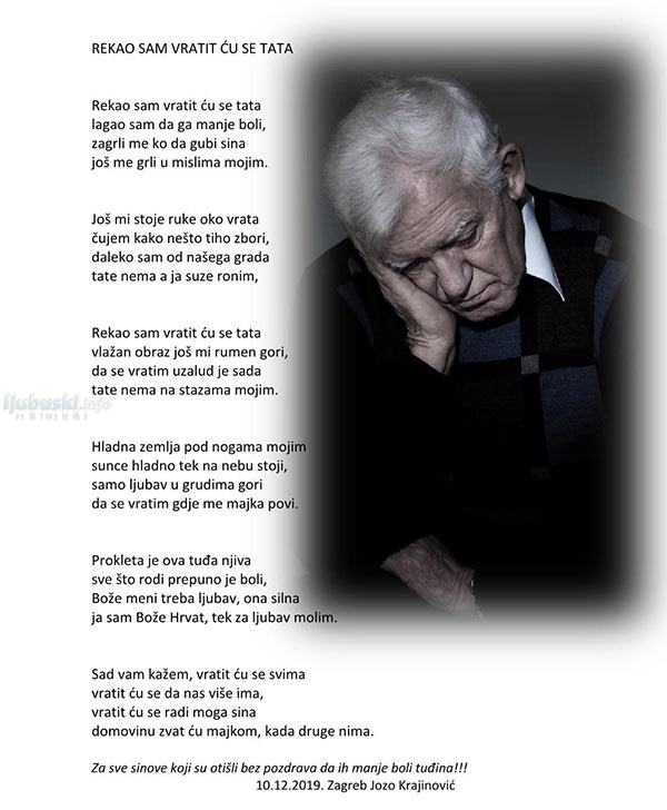 Donosimo pjesmu iz Krajinovićevog opusa "Rekao sam vratit ću se tata", kao temu ljubavi prema svom, ali i potrebe življenja u tuđini:
