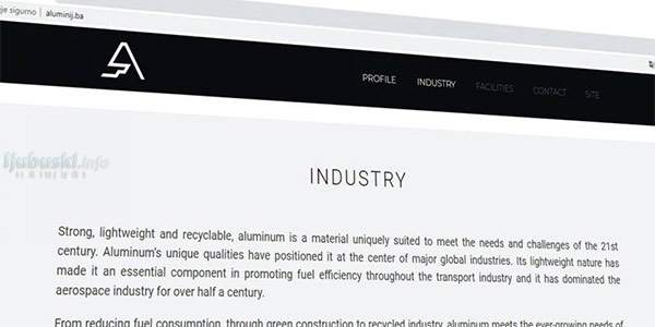 Na stranicama, koje su iz prepoznatljive svjetloplave prešle u tamnu verziju, nema sadržaja na hrvatskom jeziku odnosno BHS-verzije, a između ostalog, navedeno je kako je "Aluminij dio grupacije Abraham".