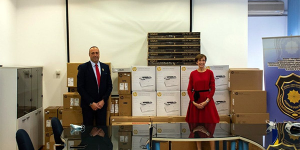 U prostorijama Federalne uprave policije (FUP) je održana svečana primopredaja donacija koju je u ime Savezne kriminalističke policije (BKA) veleposlanica Savezne Republike Njemačke NJ.E. Margret Uebber uručila zamjeniku direktora Federalne uprave policije Ensadu Kormanu.