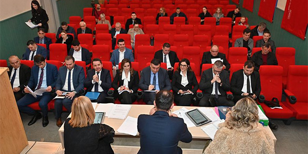 Sjednica je održana u kinu Borak jer je u tijeku obnova dvorane Skupštine ŽZH.