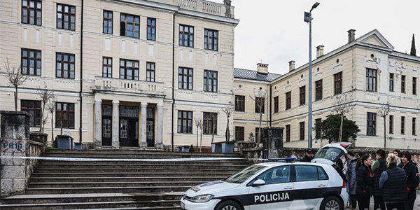 Ulaz u zgradu je trenutno zabranjen, a policija osigurava plato ispred Gimnazije.