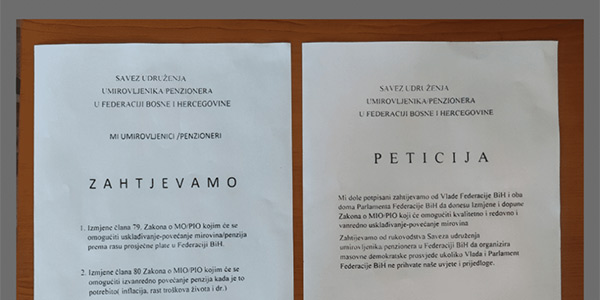 Među zahtjevima sadržanim u peticiji je i jednokratna novčana pomoć umirovljenicima koja bi se trebala realizirati do donošenja izmjena zakona.
